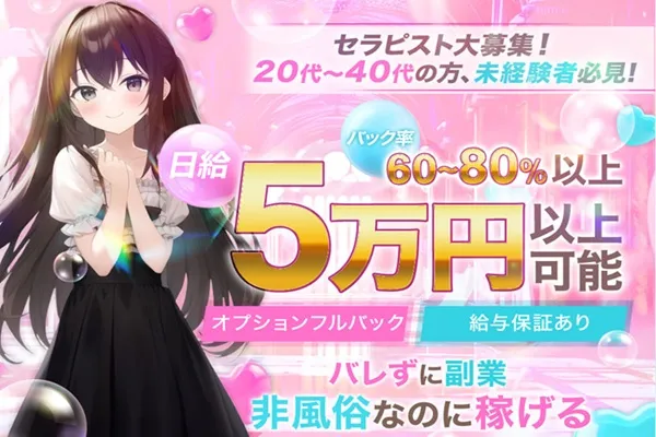 30代のセラピストさんが活躍中のお店です!月に1回・週に1回でも大丈夫、あなたの好きな時間で働けます♪健全な環境で気持ちよく働いて高給を稼ぎませんか。少しでも気になったらお気軽にお問い合わせください♪