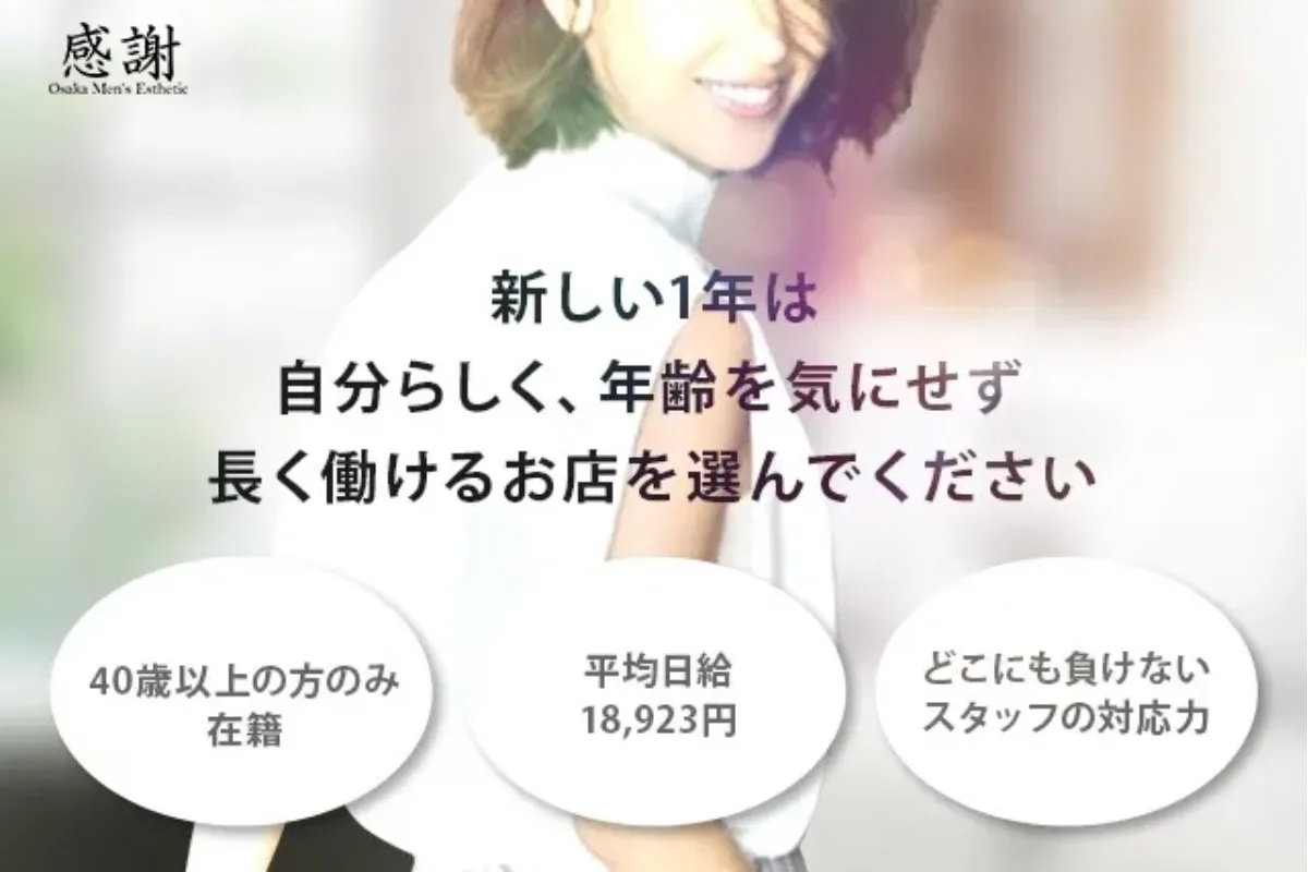 【30~50代活躍中】大阪で長く愛されてきた老舗。お客様だけでなくセラピストさんからの支持も厚く、90名以上の女性が在籍しています。90分7,000円~15,000円の高バックなだけでなく、待機中無条件で発生する時給1,000円や6時間勤務で保証される日給21,000円といった手厚い保証が魅力です◎