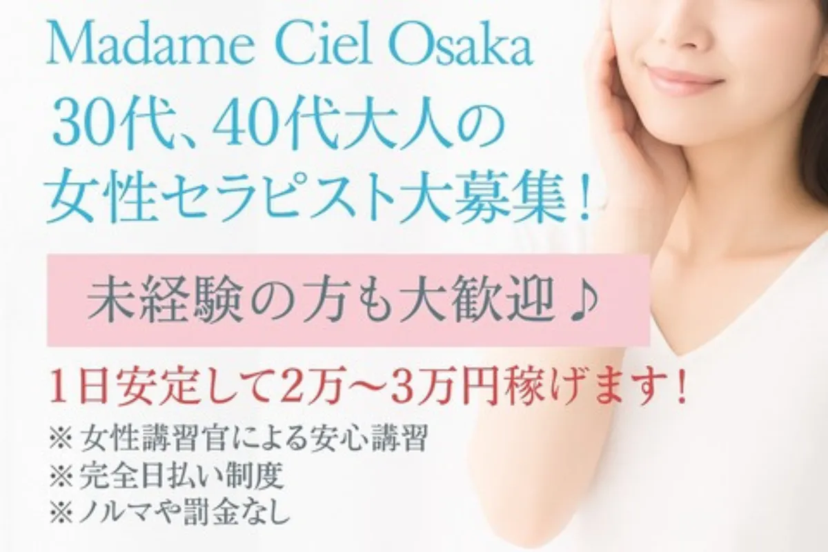 【30代&40代セラピスト活躍中!!】安定して稼ぎたい方必見の大人女性限定求人です。70分6,000円~のお給料は頑張り次第でどんどんUP♪給与保証付きなので万が一お客様がつかなかったらどうしようという不安がある方もご安心ください。帰宅送迎にも対応してくれるので、深夜まで働きたい人にもおすすでです◎