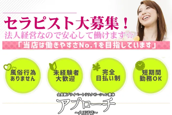 【町田にグランドオープン】セラピスト大募集!未経験歓迎・高バック率50〜60%