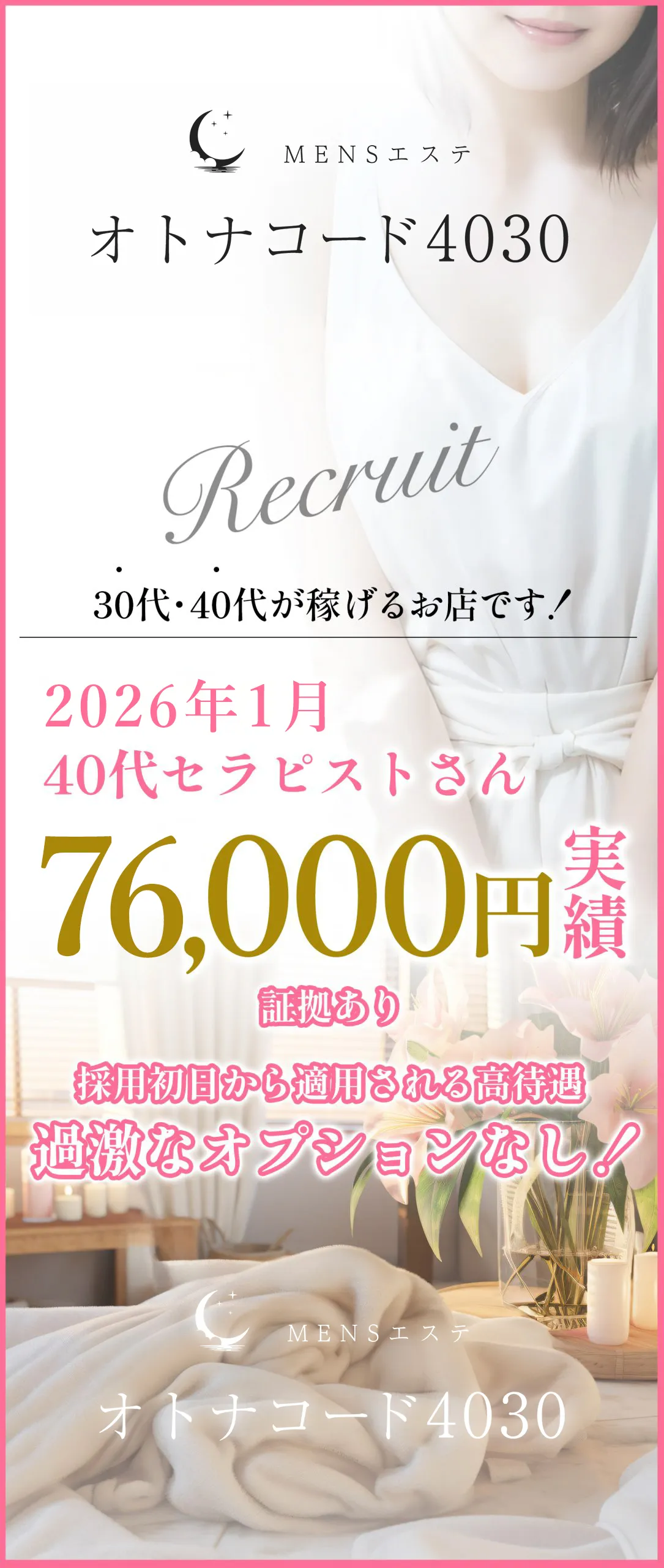 メンズエステの基本をパッケージにしたオプションしかないので、過剰なサービスをする必要がありません。 - 給与