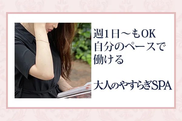 「大人のやすらぎSPA」は風俗店ではございません。風俗的行為は一切行ってませんのでご安心ください。大人の女性ならではの魅力とアロマオイルマッサージでお客様のカラダとココロを癒すとてもやりがいのあるお仕事です。「今だけ、金だけ、自分だけ」といった目先の小さなことだけではなく、「今も未来も、お金もやりがいも、自分もみんなも」といったより大きな幸せを掴めるセラピストになっていただきたいと考えています。 - 給与