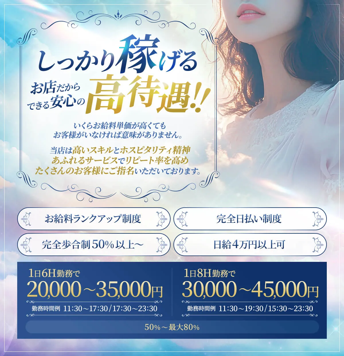 業界では圧倒的高収入と客層の良さが特徴の当店。