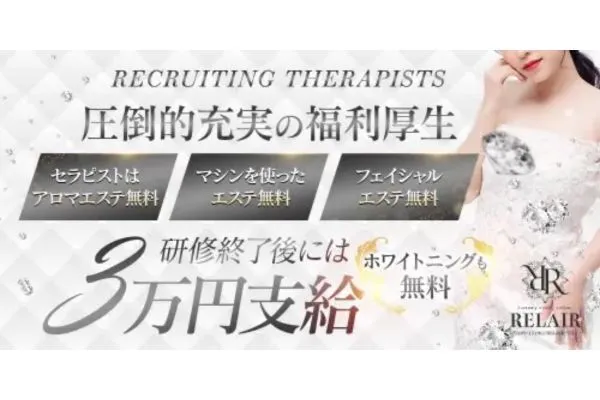 セラピストさんは各種エステ無料!充実の福利厚生♪月1出勤OK、最低3時間~!お店では現在30代が活躍中、不安なことは何でも聞いてくださいね♪