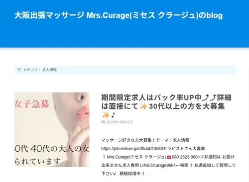 30代・40代・50代の大人女性が活躍出来るミセス店です!「ミセス.オーブスパ 」新大阪ルーム新大阪・十三・南方