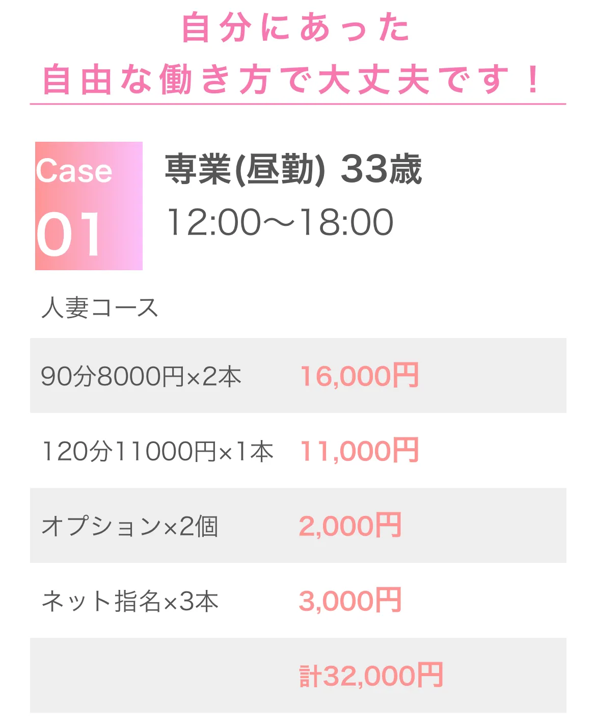 →ネット指名1000+オプションも入ってきやすいので↑のバック+2000~3000はされます