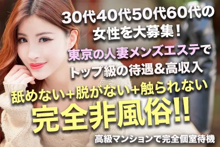 ★★ 30~69歳が一番活躍できるお店です ★★ 業界トップクラスのお給料をお約束♪ 当店は風俗店ではございません。 「舐めない・脱がない・触られない」の完全非風俗で健全に営業しております。 男性のココロとカラダを癒やすリラクゼーションサロン。 お客様に喜んで頂けるやりがいのあるお仕事です。