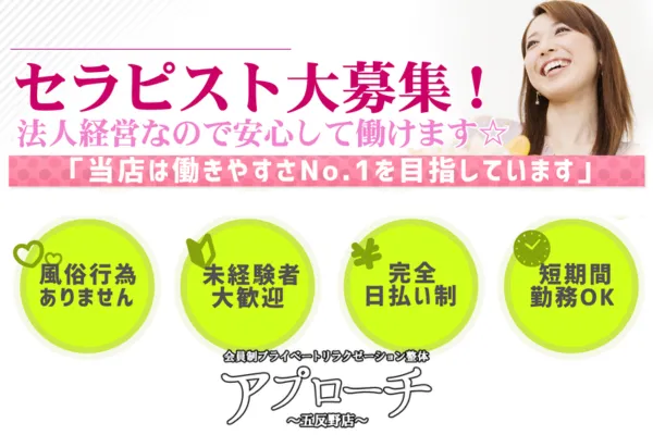 【20代・30代・40代・50代歓迎】全国に30店舗展開中の大手法人グループのお店です。セラピストさんが安心してお仕事出来る環境を整えております。