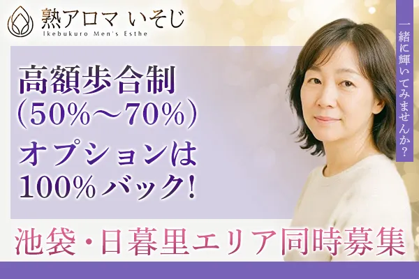 【日暮里・池袋ルーム同時OPEN】50代の女性が輝けるメンズエステサロンです!「熟アロマ・いそじ」は、いつまでも輝き続ける貴女をサポートをしお手伝いすることをお約束いたします。