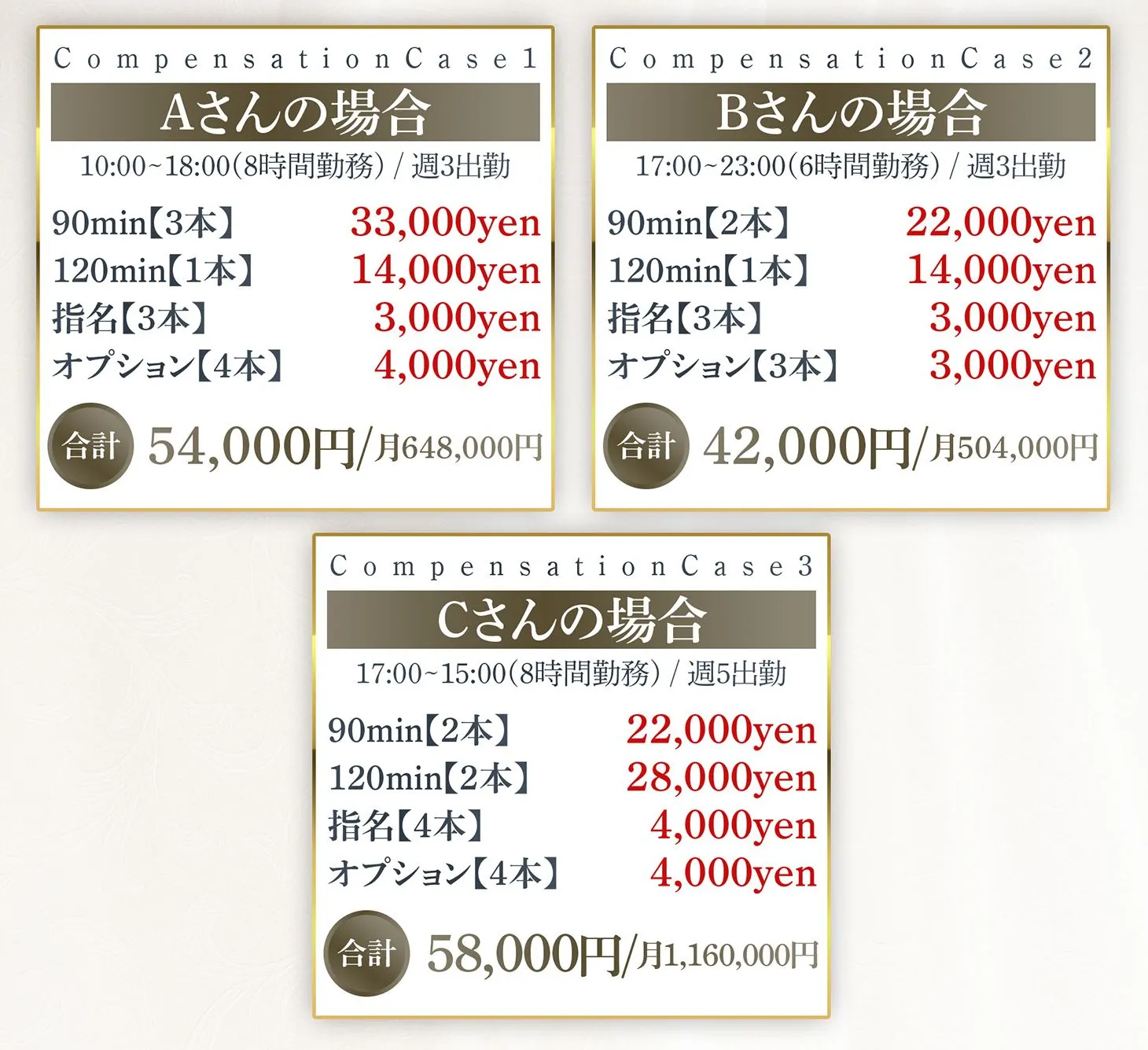 週3~4日勤務で、月収50~60万円以上も期待できるお店です。