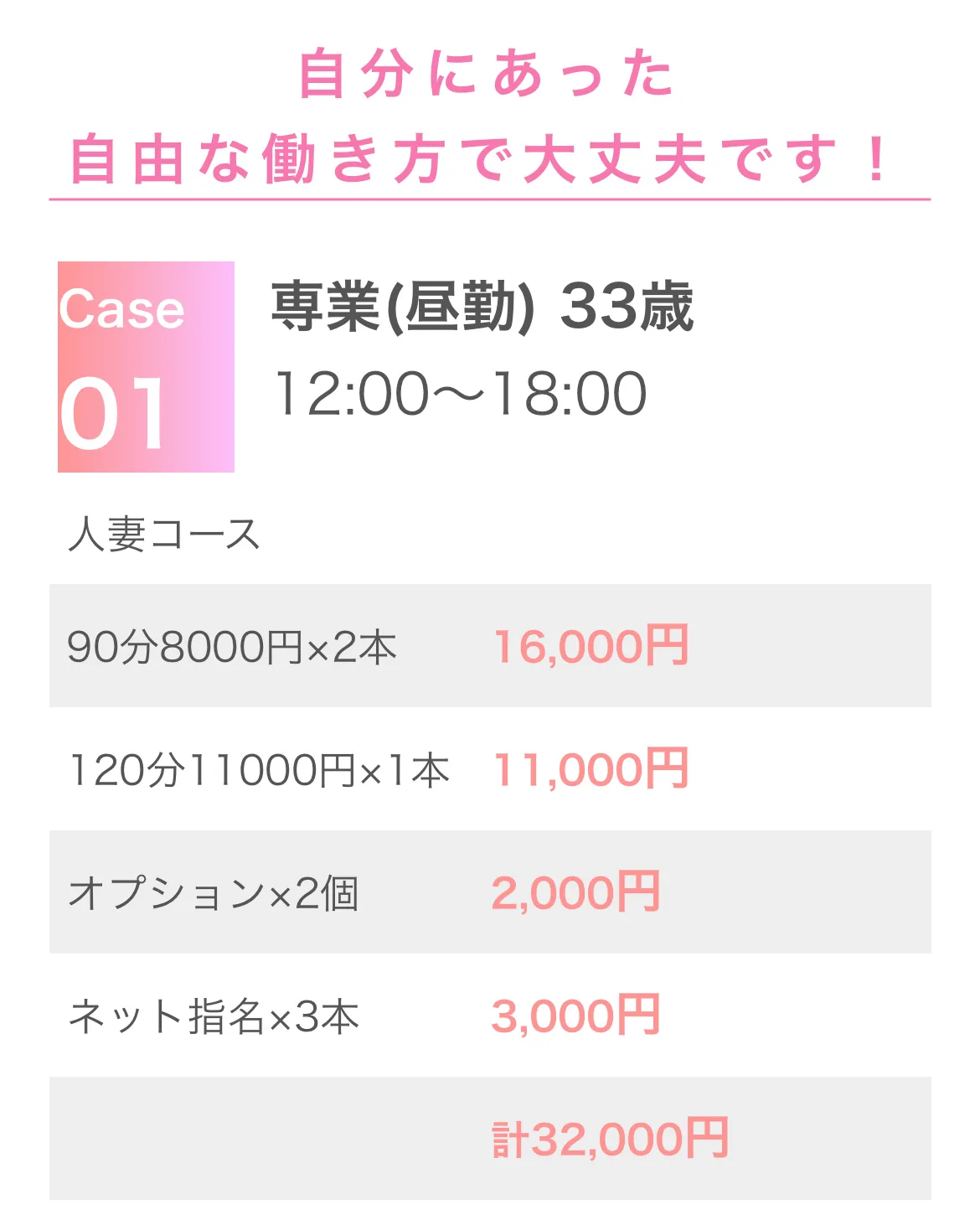 →ネット指名1000+オプションも入ってきやすいので↑のバック+2000~3000はされます