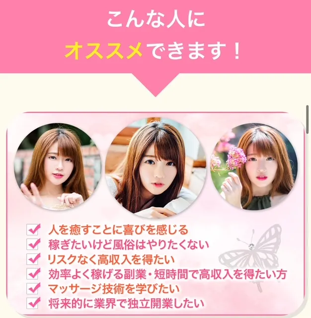 未経験の方はプロ女性講師による施術研修を受けてからデビューになります。(経験者は講習なしでも大丈夫です)