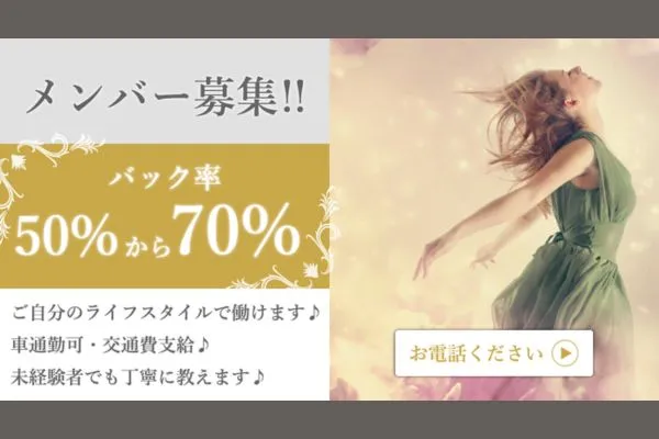 ★30代セラピストさん活躍中★接客や美容関係に興味のある方、セラピスト資格取得も可能です♪お給料はバック率50%~70%、シフトにもよりますが日給4万円以上も可能!週1回からOK、お好きな時間で勤務してください。ノルマ・罰金などは一切ありません♪