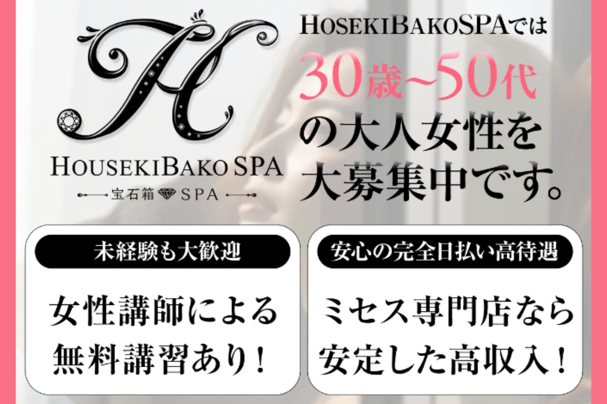 【30代~50代の大人女性を大募集】2026年4月OPEN✨90分9,000円+指名料の高バックが魅力のミセス専門店です。さらに最低保証制度もあるので稼げるか不安な方もご安心ください◎60名以上の在籍を誇る、多くの大人の女性に選ばているお店です🕊