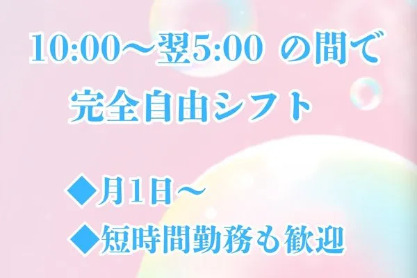 10:00〜翌5:00 の間で自由シフト