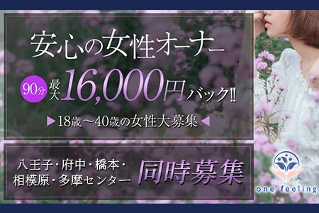 20-40代のセラピストさん募集!90分最大16,000円バックの好待遇でお迎えします。女性オーナーのお店なので何でも相談できて安心の環境です!