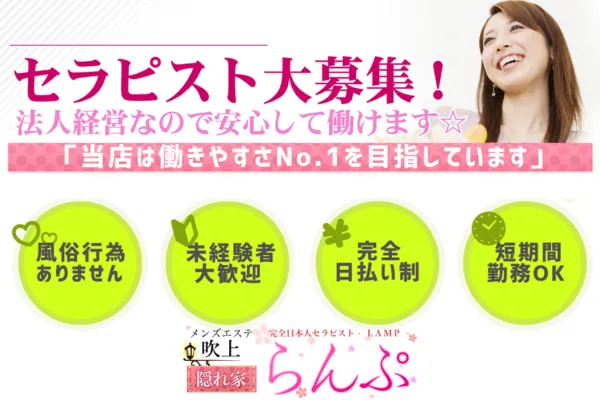 未経験者でも50%バック保証。 経験者実力により優遇!!京都エリアで圧倒的な集客力を誇るメンズエステで一緒にお仕事しませんか?女性オーナーがしっかりとサポートいたします!