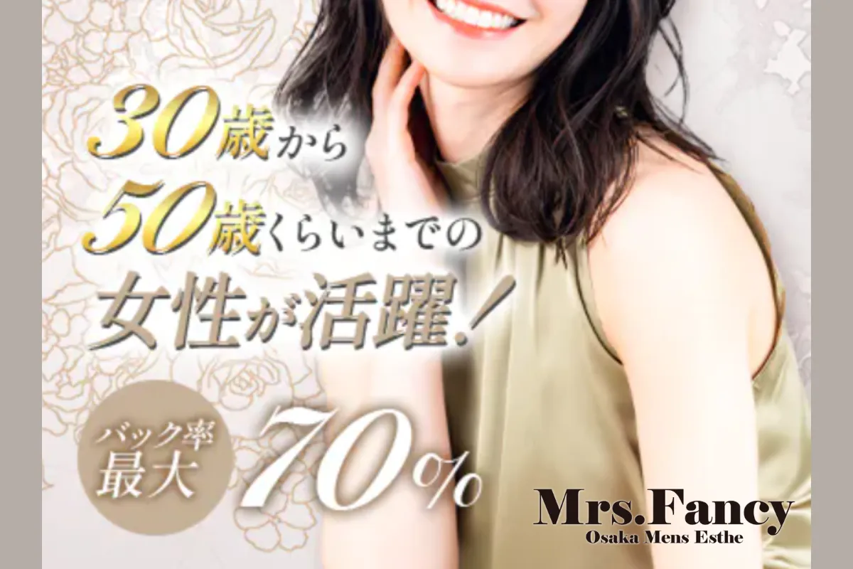 40代のセラピストさんが中心となって活躍しているミセス専門店です。バック率最低60%で日給5万円以上も狙える嬉しい高待遇が魅力✨体験入店も随時受け付けているので、ちょっとでも気になった方はまずは体験からでもお待ちしております♪