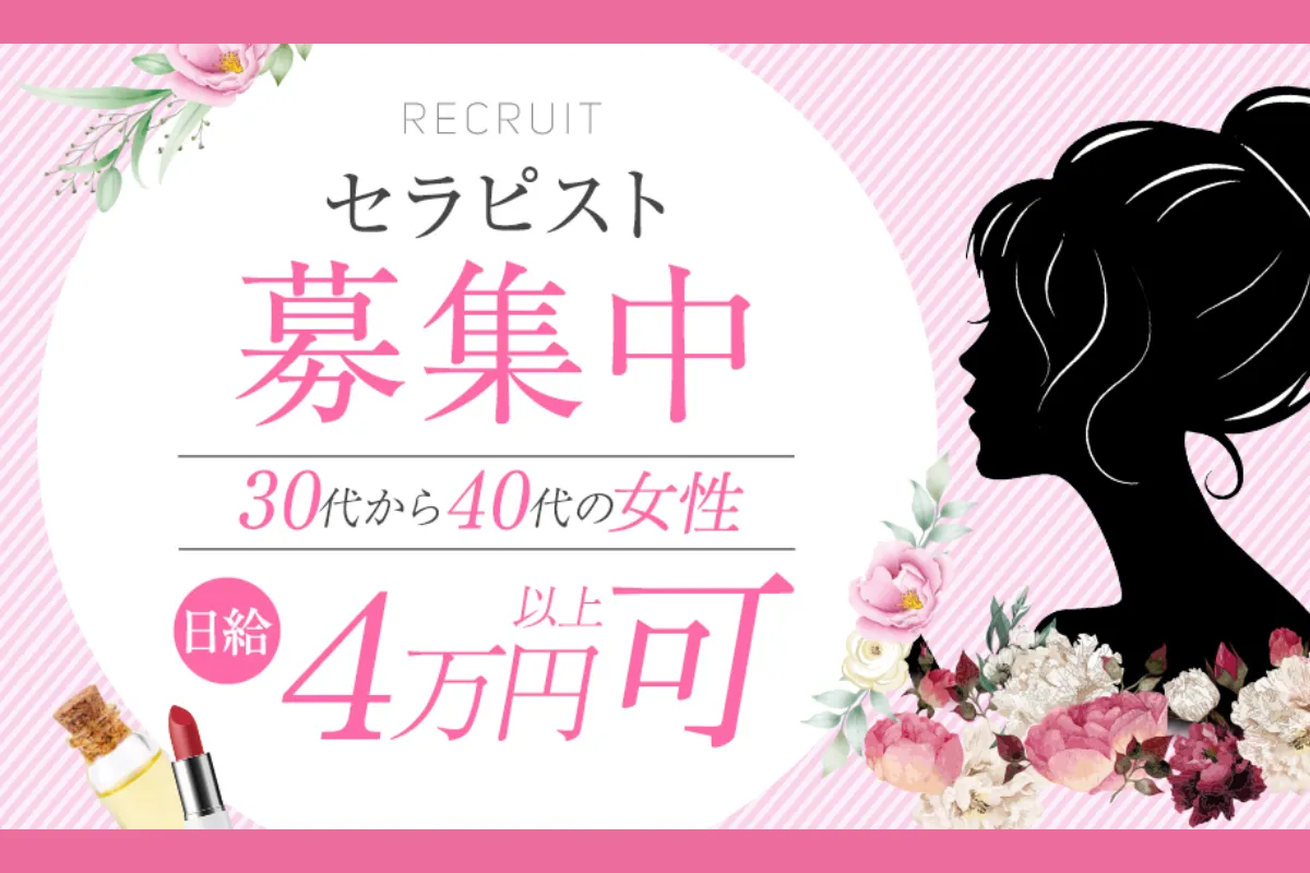 【20代・30代・40代のセラピストさん在籍】今なら入店祝い金5万円支給いたします!未経験の方は女性講師が丁寧に講習いたしますのでご安心ください!