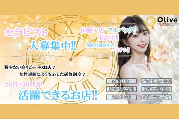 名古屋エリアに展開する人気メンズエステグループでお仕事しませんか?30代・40代のセラピストさん多数在籍しています。貴女の隙間時間で稼げますよ♪