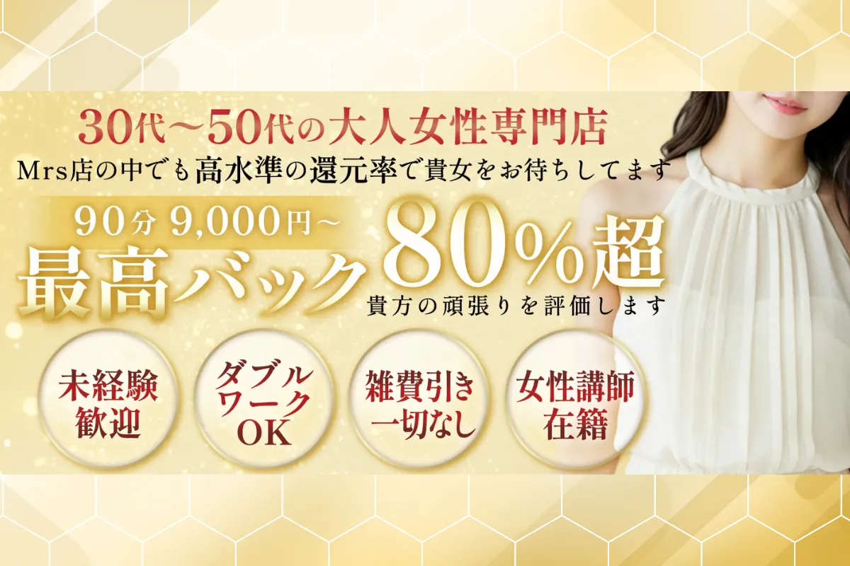 優良会員多数!安定して稼げる有名店です。30代・40代の大人の女性が在籍しているお店です。未経験でも大丈夫!経験豊富なオーナーがフルサポートいたします♪