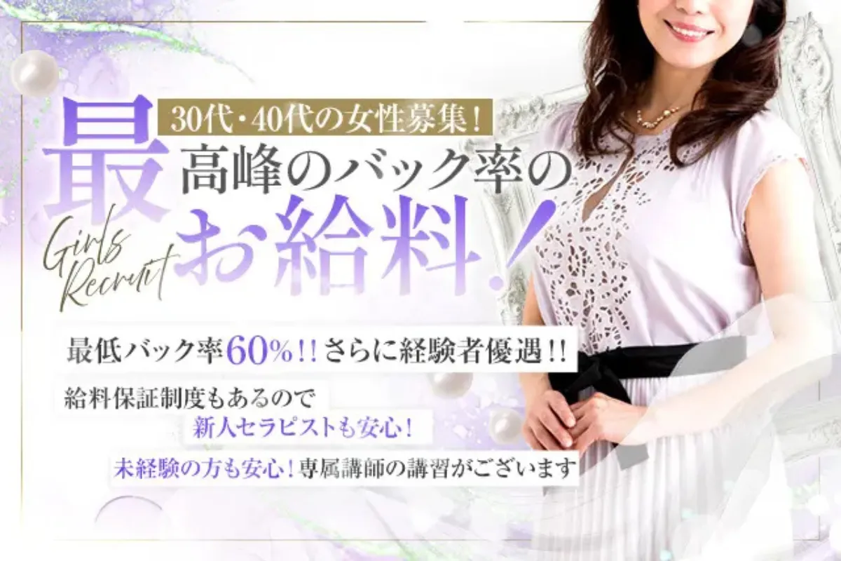 【30代&40代セラピストさん活躍中】2025年12月にオープンした大人女性専門店です。専属講師の講習や、給料保証がついているので未経験の方や稼げるのか不安な方にもおすすめ♪最低バック率は60%!!経験者の方はしっかり優遇されますのでご安心ください◎