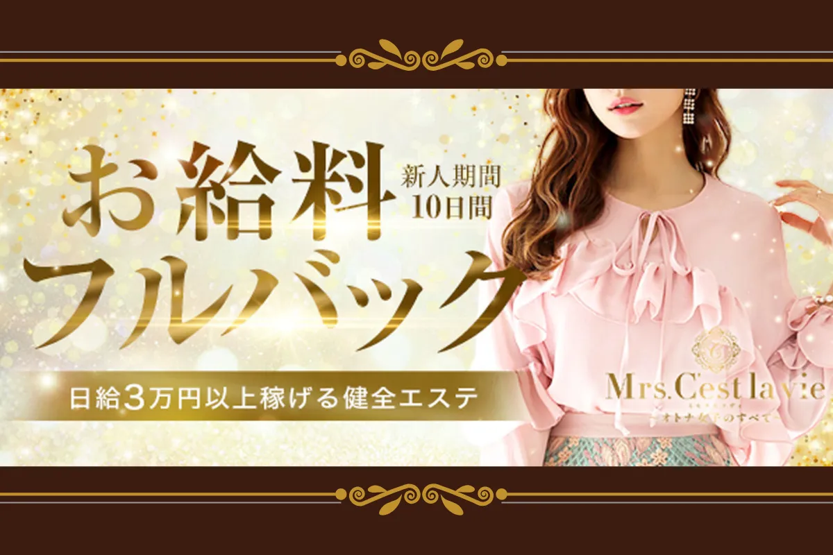 30代~40代セラピストさんが活躍している高級ミセス店⊹ ݁ ˖未経験者、経験者を問わずあらゆる大人の女性がしっかり輝きながら働ける環境を整えました。安定した収入が見込めるよう広告にも力を入れ、最良の顧客を常に確保♪MAX80%の高バック率であなたの頑張りをきちんと評価いたします◎