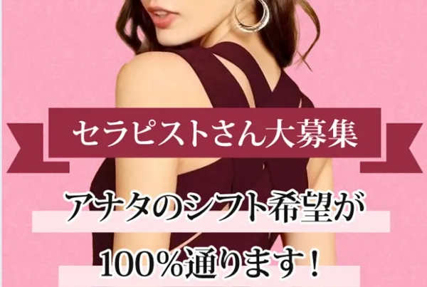 スタッフ常駐で安心・安全♪20代・30代・40代のセラピストさん募集しています!優しさ、愛情に溢れる女性が活躍できるお仕事です!初めての方もしっかりと講習しますのでご安心ください♪