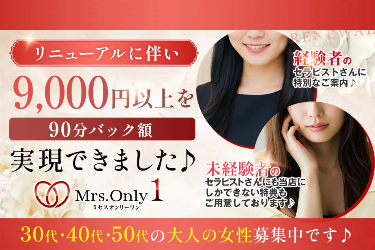 40代のセラピストさんがメインで活躍しているミセス専門店∘˚⊹バック率は60%~80%!!成績に合わせた手当てなどで多くのセラピストさんが60%超えのバック率で働いています♪専属の女性講師の研修があるのえ未経験の方も大歓迎!!全力でサポートしてくれるので安心してスタートできます◎